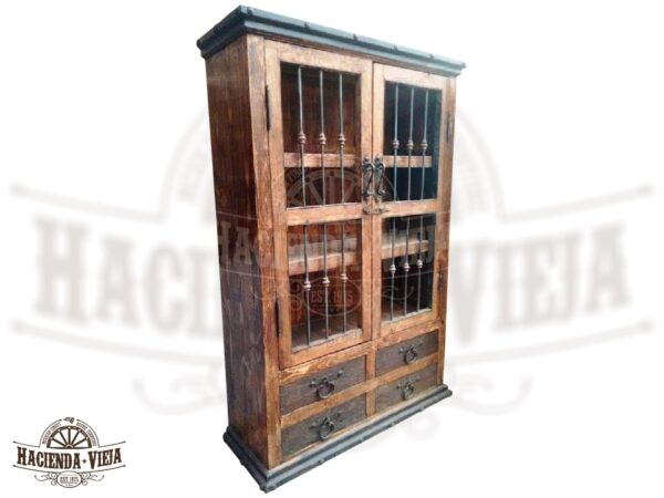 Madera de pino o rosa morada con puertas y herrería terminado mate.